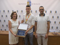 El Ayuntamiento de Benicarló ha felicitado al atleta benicarlando Alexis Sastre por la medalla de oro conseguida en salto de altura en un emotivo acto que ha reunido a amigos y familiares. El deportista ya piensa en trabajar para poder participar en los Juegos Olímpicos de Tokyo 2020.