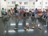Los usuarios del Centro Geriátrico y del Centro de Día Nou d'Octubre han participado esta mañana en la conmemoración del día de la Tercera Edad con una serie de actividades organizadas en el Club de la Tercera Edad. Los actos han contado con la colaboración de los voluntarios de los campos de trabajo social.
