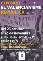Del 23 de octubre al 26 de noviembre se podrá visitar en el Edificio Gótico la exposición «El valencianisme republicà 1837-1937». La muestra irá acompañada de conferencias, charlas, proyecciones de documentales y presentaciones de varios libros.