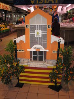 La Asociación de Vendedores del Mercado ha montado una parada promocional con numerosos elementos característicos de las Fallas. Un taller fallero y uno de confección han ayudado a preparar este magnífico estand.