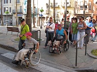 Los colectivos de discapacitados de Benicarló han recorrido la ciudad para concienciar a la ciudadanía de la importancia de cumplir las normas de circulación. El grupo ha puesto multas simbólicas a los vehículos mal aparcados y ha repartido distintivos de reconocimiento a los establecimientos adaptados.