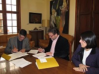 El alcalde de Benicarló, Marcelino Domingo, y el presidente de AFA-Castellón, Emilio Marmaneu, han firmado esta mañana el convenio para la cesión de la gestión de la Unidad de Respiro para personas con Alzheimer y otras demencias que se inaugurará el próximo 25 de marzo.