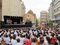 Los alumnos de tercero y cuarto de primaria de los centros educativos de Benicarló han participado esta mañana en los actos del Correllengua. La compañía Scura Splats ha amenizado la jornada con una divertida representación teatral.
