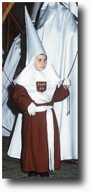 • Capuchón cubierto por antifaz en raso blanco con el emblema de "La Salle" en granate y blanco.
