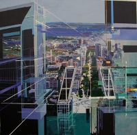 “Propongo la contemplación de un cuadro que contiene una trampa sobre la percepción de los estilos del paisaje postrealista. El fondo, el horizonte, se ofrece como un discurso antiguo que juega con la bruma tan propia del paisaje postrenacentista, ahora más cercana al expresionismo, a los paisajistas constantes del siglo XX, un guiño a los estilos antiguos, al paisaje constante. Desfilan los estilos por el cuadro de atrás hacia adelante, con momentos que no se deciden a ser cubistas, y que recuerdan a los viejos maestros castellanos que ama tanto Javier Villán. En cuanto al punto de vista, es deudor de Realismo Relativo de los primeros setenta y de los españoles más famosos de la segunda mitad del siglo XX y que no voy a citar por abundantes. Pero el autor cierra el cuadro "en construcción". Lo cierra y lo abre al mismo tiempo, porque lo primero que se ve es ese juego de perspectiva escolar. Que se resuelve en una obra que no se ha terminado de pintar porque está a medias, porque está haciéndose. No porque la ciudad haya cambiado como ocurre a otros pintores, o la luz. De manera que este cuadro es una trampa, se mire por donde se mire, pero eso y no otra cosa es también el arte, una trampa, un engaño, un simulacro, y un oficio, y un objeto de hielo que se construye con paciencia y por acumulación. Y así merece ser destacada y contemplada y leída, interpretada y reflexionada. Según mi parecer.