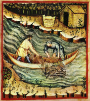 04.- La pescaLA PESCA 4. La pesca. En 1992, la Sociedad de Marineros se constituye en Pósito de Pescadores, para poder ayudarse en momentos de peligro. En 1949 se funda la Cofradía de Pescadores San Telmo, que agrupa tanto a armadores como a pescadores y continua hasta nuestros días, y a través a de la cual se comercializa la pesca. El régimen económico de los barcos de pesca se rige por las costumbres del mar y se basa en el sistema de la parte. Consiste en deducir de las ventas totales los gastos de la actividad pesquera. El resto se divide en dos partes, una para la tripulación y otra para el armador, un reparto que se suele hacer de forma semanal. La pesca de esta zona es la denominada pesca de bajura: las barcas van y vuelven cada día y las tripulaciones no son muy grandes. Tradicionalmente, las tripulaciones estaban formadas por números impares de 5, 7 o 9 hombres y las embarcaciones tenían menos de 10 metros de eslora. Las artes de pesca han evolucionado enormemente durante el siglo XX. El paso de la vela latina al motor y de los materiales de madera a la fibra sintética revolucionaron todo el sector pesquero. Muchas de las técnicas pesqueras que se utilizaban en el pasado, actualmente ya no se practican en Benicarló, pero otras han pervivido en el tiempo. Entre estas técnicas antiguas encontramos la pesca de la luz o pesca de cerco de jareta, un sistema de captura del pez azul, sardina y boquerón principalmente, basado en la pesca nocturna, ya que estos peces forman grupos que se orientan con la luz. Así mismo, encontramos la pesca con nansa que es un sistema de pesca pasivo, muy antiguo y que quedó en desuso en Benicarló y en toda la zona. Funcionaba como una trampa que atraía a los peces, Las nansas fabricadas se fabricaban con mimbre o juncos y, según lo que se quería capturar, variaba la forma y el tamaño, siendo una pesca selectiva y sostenible. La principal técnica empleada en la actualidad es la pesca de arrastre, conocida en Benicarló como pesca al bou, siendo la que genera más quilos de capturas anuales. Consiste en remolcar con la embarcación una red en forma de embudo y arrastrarla por el fondo marino. El arrastre es una técnica antigua que ha ido evolucionando enormemente a partir del primer tercio del siglo XX. Antiguamente, se utilizaban dos embarcaciones de vela que navegaban de forma paralela, llamadas parelles de bou. Por otro lado, encontramos las artes menores, como el palangre (de fondo) que es un arte de pesca pasivo, es decir, queda fijo en un lugar. Consiste en un hilo largo, llamado cuerda madre, de donde cuelgan otras cuerdas más finas y cortas llamadas armadas, donde se enganchan los anzuelos. Antiguamente, también se pescaba con un palangre de superficie, conocido por los marineros como marajera. Así mismo, encontramos el trasmallo, conocido en Benicarló como trasmall o tiret, siendo el arte de pesca menor con más tradición en nuestras costas. Es un sistema de pesca pasivo formado por tres mallas superpuestas de diferente trama. Las dos de la parte exterior son iguales, teniendo la malla interior una trama más fin, de manera que el pez queda atrapado. Gracias a un sistema de plomos y flotadores las redes se mantienen verticales a modo de trampa. Finalmente, tenemos la pesca con caduf (cangilón), una técnica passiva utilizada exclusivamente para pescar pulpo. Anterioremente, los cangilones eran de tierra cocida, pero se rompían con mucha facilidad, por lo cual a finales del siglo XX se fueron sustituyendo por los de plástico, más ligeros y resistentes. - - - - - 4. La pesca. El 1922, la Societat de Mariners es va constituir en Pòsit de Pescadors per poder ajudar-se en moments de perill. El 1949 es funda la Confraria de Pescadors Sant Telm, que agrupa tant armadors com pescadors i continua fins als nostres dies, i a través de la qual es comercialitza la pesca. El règim econòmic dels vaixells de pesca es regeix pels costums de la mar i es basa en el sistema de la part. Consisteix a deduir de les vendes totals les despeses pròpies de l'activitat pesquera. La resta es divideix en dues parts, una per a la tripulació i l'altra per l'armador, un repartiment que se sol fer setmanalment. La pesca d'aquesta zona és la denominada pesca de baixura: les barques van i tornen cada dia i les tripulacions no són molt grans. Tradicionalment, les tripulacions estaven formades per nombres imparells de 5, 7 o 9 homes i les embarcacions tenien menys de 10 metres d'eslora. Les arts de pesca han evolucionat enormement durant el segle XX. El pas de la vela llatina al motor i dels materials de fusta a la fibra sintètica van revolucionar tot el sector pesquer. Moltes de les tècniques pesqueres que s'utilitzaven en el passat, actualment ja no es practiquen a Benicarló, però n'hi ha d'altres que sí que han perviscut en el temps. Entre aquestes tècniques antigues trobem la pesca de la llum o pesca de cércol amb traïnya, un sistema de captura de peix blau, sardina i seitó principalment, basat en una pesca nocturna, ja que aquests peixos formen moles que s'orienten amb la llum. Així mateix, trobem la pesca amb nansa que és un sistema de pesca passiu, molt antic i que va quedar en desús a Benicarló i a tota aquesta zona. Funcionava com un parany que atreia els peixos. Les nanses eren fabricades amb vímet o joncs i, segons el que es volia capturar, variava la forma i la grandària, sent una pesca selectiva i sostenible. La principal tècnica emprada en l'actualitat és la pesca d'arrossegament, coneguda a Benicarló com pesca al bou, sent la que genera més quilos de captures anuals. Consisteix a remolcar amb l'embarcació una gran xarxa amb forma d'embut i arrossegar-la pel fons marí. L'arrossegament és una tècnica antiga que ha evolucionat enormement a partir del primer terç del segle XX. Antigament, s'usaven dues embarcacions de vela que navegaven paral·lelament, anomenades parelles de bou. D'altra banda, trobem les art