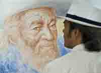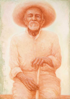 Si en llegir aquest escrit es troben al MUCBE, és més, si tenen prop les obres del recent guanyador del XXXIV Certamen Biennal de Pintura Ciutat de Benicarló, estic segur que entendran per què, en pensar en la nova exposició de Jerónimo Uribe Clarín, he acabat parlant d'un Nacha Pop. Curiosament, no és l'única de las cançons del poeta madrileny que bé podria il·lustrar qualsevol text sobre l'artista mexicà. I és que l'obra d'Uribe també està repleta de llocs d'esbarjo, arquitectures solitàries, rellotges en la foscor i amors tan complementaris com la pluja al sol. Sota el suggeridor i esclaridor títol de Quarta dècada, les mateixes que porta pintant, Jerónimo ens presenta retrats de gran format. Els seus protagonistes són, en la major part dels cassos, familiars del propi autor. María de la Luz, Macedonio, Aurora, Librado, Guadalupe, José, Ricardo, són, a més de pares, avis o oncles de Jerónimo, els seus assessors artístics. Encara que aquesta espècie de tutelatge té molt d'espiritual, de místic, de ascètic. Però lluny de recrear-se en el seu venerable arbre familiar, opta per radiografiar les pròpies entranyes del seu país natal. Hi ha molt dels seus ancestres en aquesta exposició, però també hi ha mirades que recorden inevitablement Juanes Rulfo, Octavios Paz, José Marías Velasco, Diegos Rivera, Chavelas Vargas, Fridas Kahlo, Emilianos Zapata. Cada arruga és una revolució, cada cicatriu una frontera per assaltar… una invitació per a somiar. És Mèxic en estat pur, és Jerónimo Uribe Clarín en essència. Manu Vives. Periodista __________________________________________________________ La pintura de Jerónimo Uribe Clarín té, entre els seus molts valors, trets conseqüentment determinatius: un és la tècnica, és a dir, el que comunament en l’argot es denomina l’ofici, capaç de vèncer les dificultats que planteja la figuració en totes les àrees, des del paisatge a la natura morta, passant pel retrat; un altre és l’acusat simbolisme dels seus temes, en els quals es mesclen, en un imaginatiu calidoscopi, arguments molt diversos amb un designi al·legòric que té molt a veure amb la quimera i la seducció màgica; i el tercer és el temperament, la personalitat efusiva i impetuosa, patent, per exemple, en el traç apassionat, en la textura, en el contrast del color i en la sensualitat voluptuosa, en molts casos eròtica, dels seus traços. El propòsit de les seues obres, en les quals aguaita una fogosa surrealitat emocional, que invita a l’expressionisme i al romanticisme a ser hostes de la imaginativa estada del seu desig, és delirant i expressiu, i per això sorprèn i torba. En les seues pintures emergeixen els motius en un espai fantàstic, per mitjà d’unes apostes de composició i colorit que obliguen l’espectador a especular i a tirar mà de les seues remembrances, de les seues lectures, de les seues sensacions i les seues vivències més utòpiques. D’aquesta manera el quadre es converteix, per obra i gràcia del quefer d’aquest artista mexicà, en un territori de seducció intuïtiva i enginyosa, que tant permet valorar l’aposta artística en si mateixa com la possibilitat de somiar, creant una novel·la pròpia, amb personatges fabulosos, alliberant l’al·lucinació interior de cadascú. No és estrany que així siga perquè Jerónimo Uribe pintor, escultor, músic, videasta... vol reflectir en els seus llenços la diversitat d’eixes heterogènies maquinacions, capaces d’impulsar, amb passió, el seu menester creatiu, inquietant sempre, sorprenent perennement. ANTONIO GASCÓ _________________________________________________________