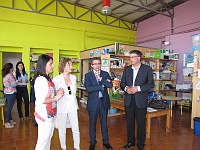 El secretari autonòmic i l'alcalde, acompanyats de la directora general de Família i Dona, Celia Ortega, i del director general de Joventut, Marcos Sanchis, i de les regidores de Benestar Social, Sarah Vallés, i joventut, Rocío Martínez, han visitat el Centre Social Municipal La Farola, on s'ubicarà el PEF.
