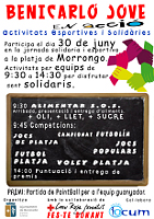 La jornada "Benicarló jove en acció" obrirà la programació el 30 de juny, una activitat centrada en la pràctica de diversos esports però que incorporarà una vessant solidària a través de la qual els joves que vulguen participar hauran de portar menjar, bàsicament oli, sucre i llet, segons les demandes que ha especificat Caritas. També la Creu Roja farà una crida als joves per conscienciar-los de la importància de donar sang. Pel que fa a la vessant esportiva, la jornada, que tindrà lloc a la platja del Morrongo, inclourà activitats en grups de 4 o 6 persones, que practicaran futbol platja, volei platja, jocs populars o jocs de platja.