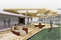 La part coberta estarà formada per un rectangle revestit de vidre i rematat amb una llosa de formigó. A l'interior hi haurà diferents zones: menjador, barra, cuina i lavabos. Tot, completament accessible i amb una superfície de vora 50 metres quadrats. La zona de terrassa descoberta, també de 50 metres quadrats, tindrà uns pilars d'estrella d'acer Corten (un tipus d'acer realitzat amb una composició química que fa que la seva oxidació tinga unes característiques particulars que el protegeixen de la corrosió atmosfèrica) i estarà rematada amb bigues de fusta especial per a exteriors que donaran ombra.