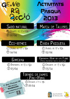 La primera activitat programada, el 2 d'abril, és un taller d'elaboració de sabó natural, on s'explicarà i es posarà en pràctica el mètode artesanal d'elaboració de sabó, amb oli, sosa càustica i glicerina. L'endemà, dia 3 d'abril, tindrà lloc una jornada lúdica amb demostracions per part de tots els joves que durant el primer trimestre de l'any han participat en els diversos tallers de teatre, guitarra, premsa, còmic o cuina.