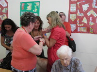La consellera de Bienestar Social, Asunción Sánchez Zaplana, acompañada del alcalde, Marcelino Domingo, y del director general del IVAJ, Marcos Sanchis, entre otras autoridades, han visitado el campo de trabajo 'Personas mayores y discapacidad' que se está llevando a cabo en Benicarló desde la semana pasada. A través de este campo de trabajo, 18 jóvenes procedentes de toda España se encuentran en Benicarló para dar apoyo en las actividades diarias que se realizan en el Centro Geriátrico y en la Residencia Sant Francesc, ya sea participando en la organización de los talleres de habilidades cognitivas, de gimnasia, de manualidades o de cocina.