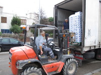 Voluntaris de Caritas i treballadors de la Brigada Municipal de Serveis han descarregat aquest matí 7.400 quilos d'aliments procedents del Banc d'Aliments de Castelló que s'han anat ubicant a les noves instal·lacions del Banc d'Aliments de Benicarló. El carregament contenia aliments bàsics com arròs, fruita en conserva, tomata fregida, llet sencera, formatge, cigrons, llenties, pasta i aliments infantils.