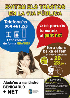 Medio Ambiente ha activado una campaña informativa para concienciar a la ciudadanía sobre el abandono de enseres y voluminosos en las calles. El Ayuntamiento dispone de un servicio de recogida selectiva a domicilio a través del teléfono 964 461 253.