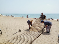 La playa de la Caracola de Benicarló ya muestra la bandera azul que simboliza la calidad de las aguas y de los servicios que se ofrecen a los bañistas. Las vallas de la playa del Morrongo se retirarán este viernes y las obras frente al Parador se paralizan hasta el 31 de agosto.