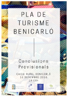 Després de sis mesos de treball intens amb els principals agents del turisme de Benicarló, el proper 16 de desembre es presentaran els resultats provisionals del Pla Estratègic de Turisme. L'acte tindrà lloc a les 19.00 hores al saló d'actes de Caixa Benicarló i servirà per a comunicar a tota la ciutadania les propostes redactades del pla i per a sotmetre a validació pública la proposta de posicionament turístic i les accions que s'hi contemplen.