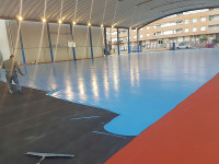 La elección del nuevo pavimento «no ha sido nada fácil», en palabras del concejal, que ha reconocido que «hemos tenido que optar por un material que se adaptara tanto a las actividades deportivas como a los usos como recinto ferial, espacio de conciertos o de galas festivas». En este sentido, Flos ha explicado que «la rugosidad y adherencia del material escogido lo hacen ideal para la práctica deportiva, mientras que su dureza permite que la pista se dedique también a otros usos».