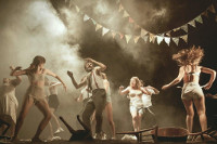 Todavía en el mes de abril, el viernes 28, se ha programado el espectáculo «Ahora todo es de noche», de la compañía La Zaranda, una de las más veteranas del estado español y con un importante trayectoria internacional. El montaje lo protagonizan tres desahuciados que pululan de noche por la ciudad.