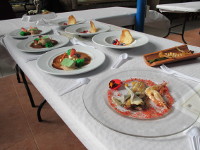 En concret, els estudiants han elaborat dos plats principals amb carxofes, llagostins i calçots i dos plats dolços: un prepostre, fet amb un sorbet de maduixa i carxofa, amb una teula de carxofa i caviar de xocolate; i un postre, compost per un crumble amb un gelat d'avellana, una teula i una galeta, tots dos de carxofa. Una vegada fetes les elaboracions, els alumnes han oferit al públic tastar el plats.