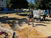 Els operaris de la Brigada d'Obres i Serveis treballen en la construcció d'un nou parc saludable que s'instal·larà a la plaça de la Constitució. A més d'aparells d'exercici i gimnàstica, la nova zona també comptarà amb espai de jocs, gronxadors per a xiquets i xiquetes d'1 a 9 anys i també gronxadors adaptats.