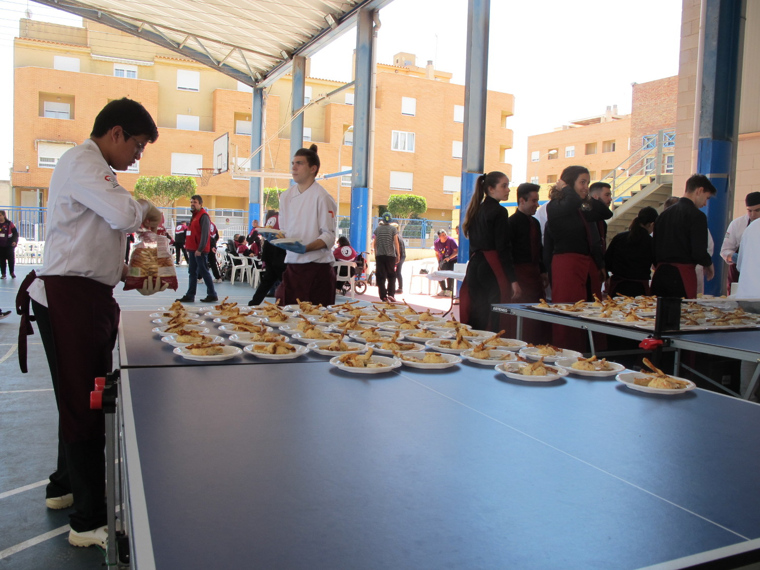 Este año, las actividades han contado con la colaboración de los alumnos del grado superior de Atención a personas en situación de dependencia del IES Ramón Cid y de los profesores y alumnos de la Escuela de Hostelería del Centro Integrado Público de Formación Profesional que, como cada año, también han participado en la jornada elaborando y sirviendo la comida de hermandad que ha puesto el punto y final a la jornada.