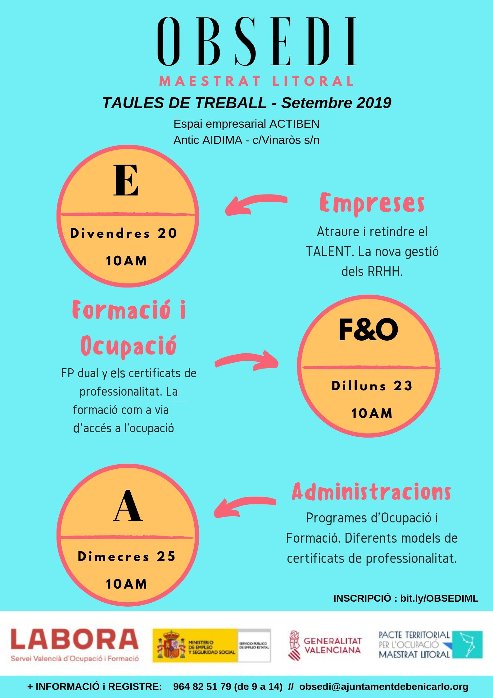 En concret, el programa formatiu engegarà el dia 20 de setembre amb «Atraure i retindre el talent en el territori. La nova gestió de Recursos Humans», la primera de les jornades adreçades a empreses. La jornada inclourà una conferència a càrrec de la directora de l'«Espai Empreses» del Labora, Aguas Vivas Salom, a més d'una taula de treball complementària. Al llarg de la jornada es tractaran els principals problemes de les empreses referents a la contractació, la retenció de talent i la relació amb les diferents administracions en l'àmbit de l'ocupació.