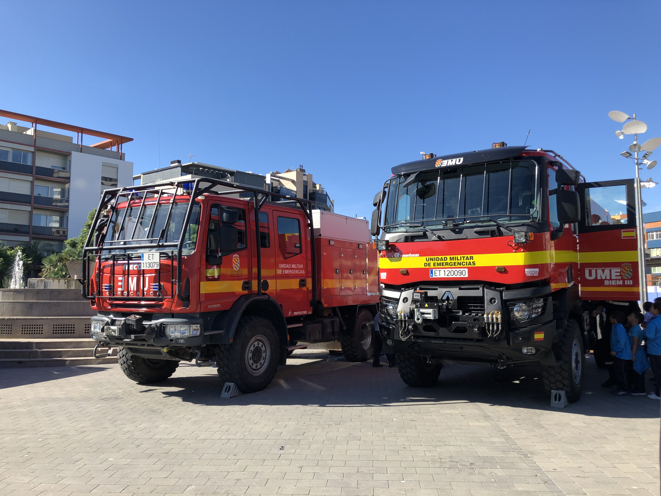 Además, a lo largo de hoy también se exhiben en la plaza de la Constitución una serie de vehículos y de medios que la UME utiliza para sus intervenciones. En concreto, se podrán ver dos vehículos auto-bombas, un Amarok (vehículo todo-terreno), dos motos de policía militar, un camión con con quitanieve de proa y dispensadora de sal, una EMBAL (máquina de extracción de agua y barros), una plataforma de trabajo de aluminio (embarcación), un Mallorca (Puesto de mando avanzado) y un VAMTAC (vehículo lleva personal).