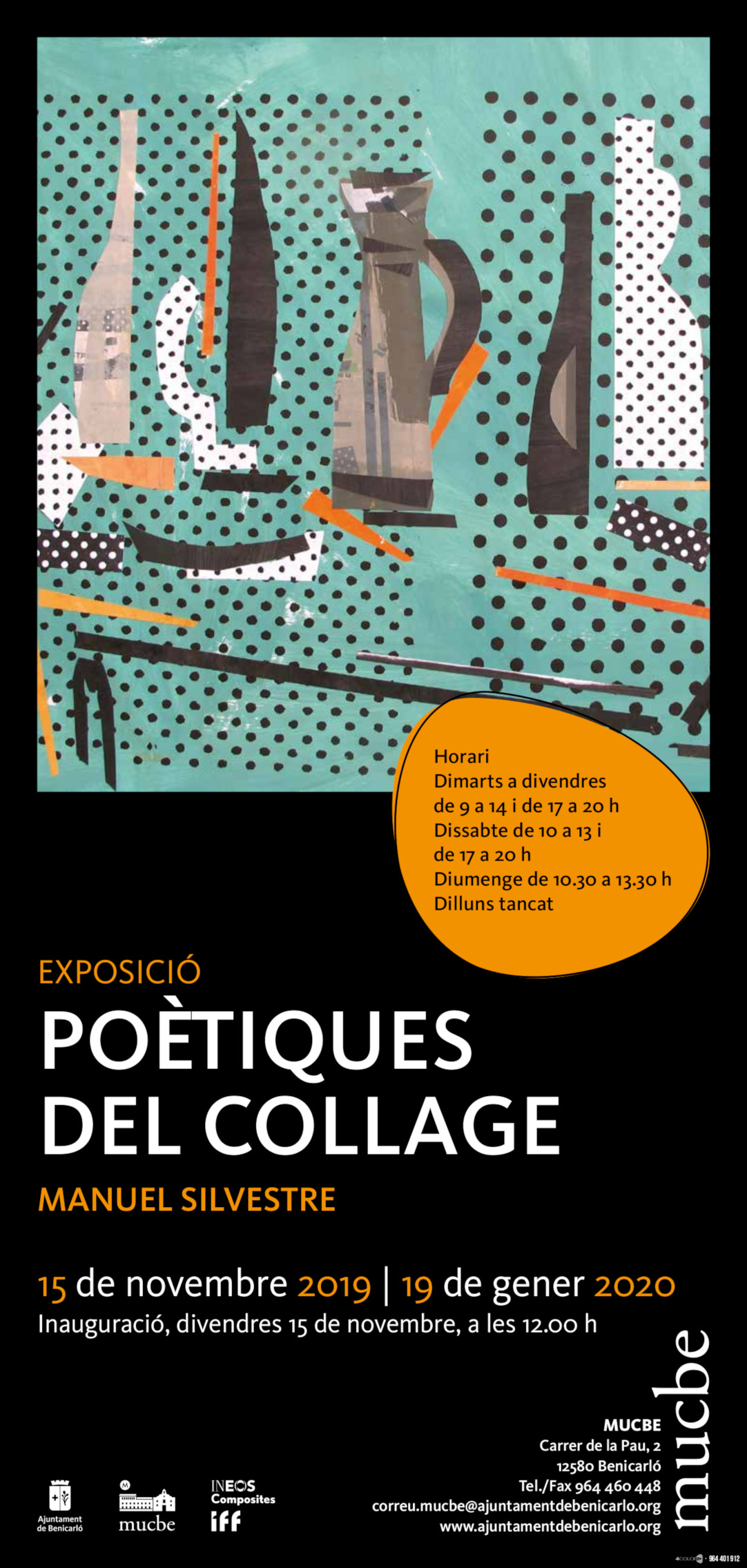 Avui s'ha inaugurat al Mucbe «Poètiques del Collage», una exposició de Manuel Silvestre (València, 1949), pintor, gravador, doctor en Belles Arts per la Universitat Politècnica de València i catedràtic en Serigrafia.