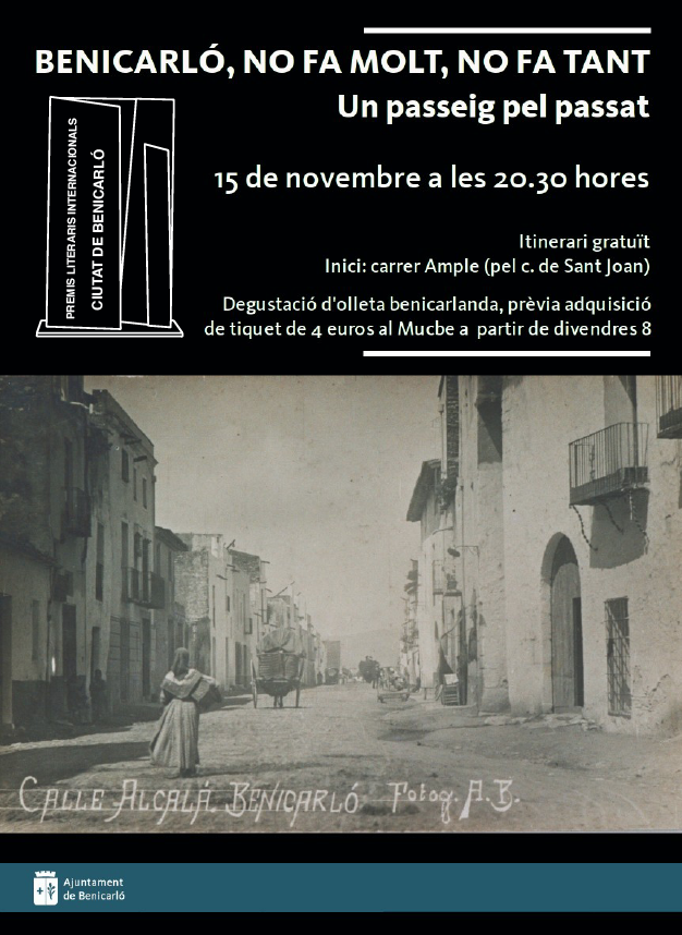 Benicarló es prepara per a viure un dels caps de setmana culturalment més intensos de l'any. Després d'una setmana carregada d'activitats culturals i promocionals, avui divendres, el Premis Literaris encaren la recta final. I ho fan amb una proposta que ha comptat amb la col·laboració de nombroses associacions i entitats de la ciutat i que ens proposa un viatge al passat, pels records, les imatges, les paraules i els sons. En definitiva, pel patrimoni efímer i immaterial de la història de Benicarló. El passeig començarà a les 20.30 hores al carrer Ample i finalitzarà amb una degustació d'olleta benicarlanda, prèvia adquisició del tiquet corresponent al Mucbe.