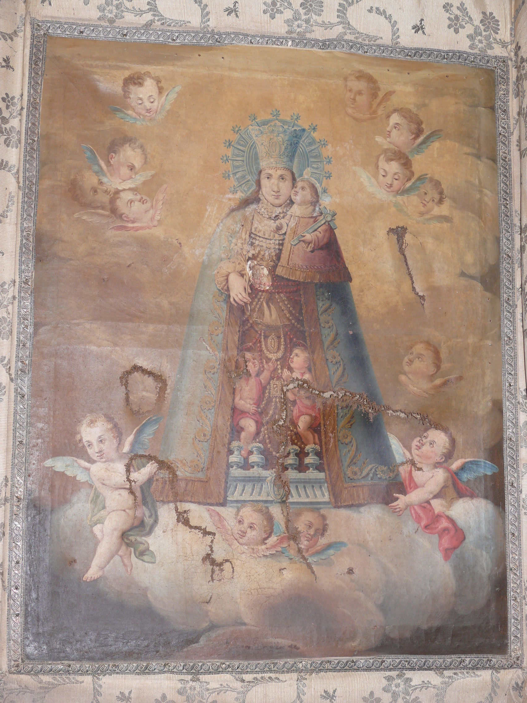 La segona peça és un oli sobre tela de 68 x 86 cm, superposat a una altra tela, que possiblement s'utilitzava a mode de pendó. Es tracta d'una obra de temàtica religiosa, amb la representació de la Mare de Déu dels Desemparats. També és una obra de la qual es desconeix l'autoria, el títol, el valor que poguera tenir i la datació, tot i que al tractar-se d'un element decoratiu de la capella de la Casa del Marqués, podria pertànyer al segle XVIII.