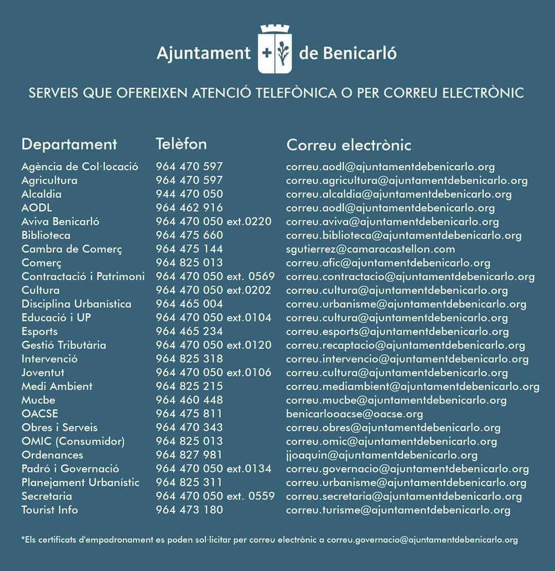 Xaro Miralles también se ha referido a las medidas que ha acordado el Ayuntamiento desde el pasado 12 de marzo y ha recordado que «a pesar de que hemos restringido la atención al público y que tenemos todas las instalaciones municipales cerradas, cualquier persona que lo necesite puede contactar con el Ayuntamiento vía telefónica o por correo electrónico».