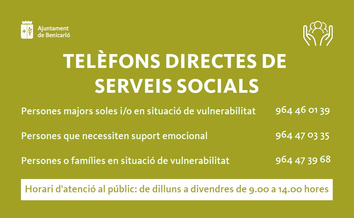 Miralles ha remarcado también que «desde el Departamento de Servicios Sociales se han habilitado 3 líneas directas de teléfono para los colectivos más vulnerables».