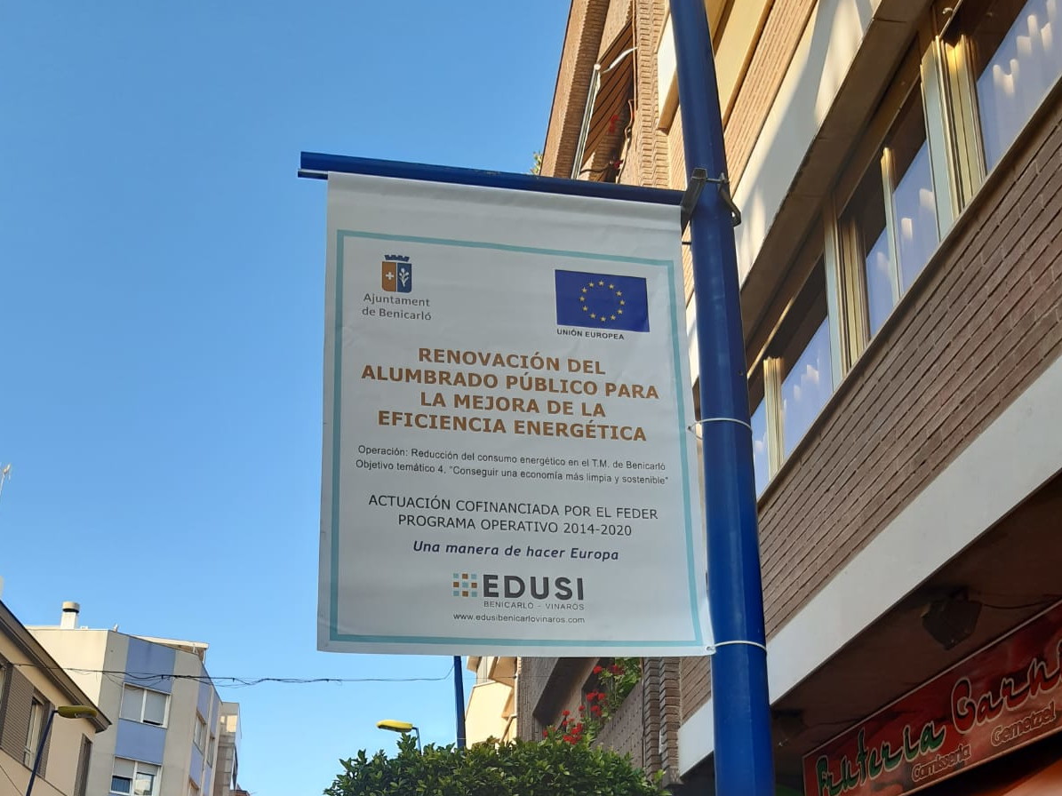 Aquesta setmana han començat els treballs per a renovar l'enllumenat públic de Benicarló, un projecte emmarcat en l'Estratègia de Desenvolupament Urbà Sostenible Integrat (EDUSI), cofinançada pel Fons Europeu de Desenvolupament Regial (FEDER) en el marc del Programa Operatiu Plurirregional d'Espanya 2014-2020. que suposarà per a l'Ajuntament un estalvi del 69% en despesa energètica. Aquest estalvi, que es traduirà en 142.253,40 euros a l'any, també suposarà una reducció d'emissions de CO2 que s'ha calculat en 271 tones per any.