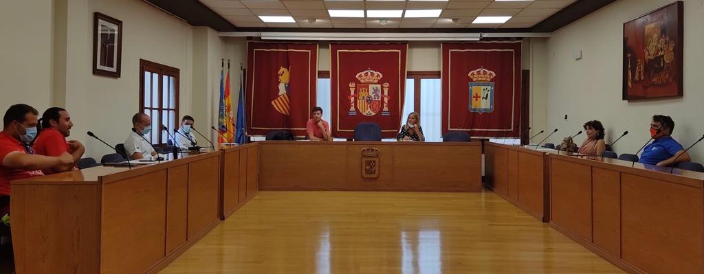 La regidora de Turisme, Isabel Cardona, el regidor de Policia i Seguretat i Obres i Serveis i els tècnics de l'equip de socorristes i dels informadors de platges s'han reunit a l'Ajuntament per a fer una primera valoració de les mesures adoptades a les platges de Benicarló en relació amb la covid19.