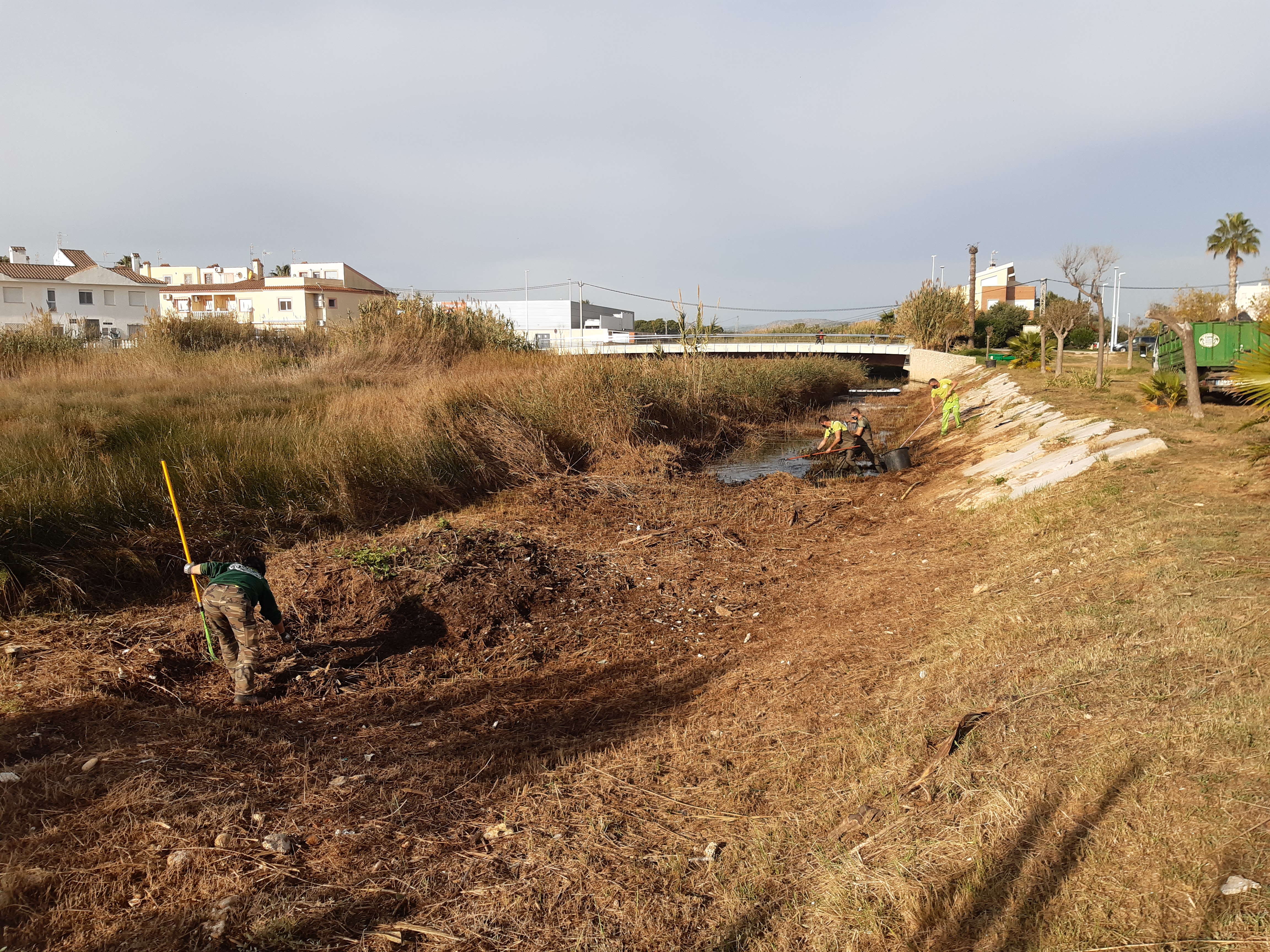 Los trabajos, según ha detallado el técnico de Medio Ambiente, Jaume Vilanova, consistirán en eliminar los residuos sólidos que se habían acumulado y retirar la vegetación que ha ido creciendo espontáneamente y que dificulta la capacidad de evacuación de aguas al mar en caso de lluvias torrenciales. También se están retirando las grabas y arenas que se han ido depositando debajo del puente y que, en caso de grandes avenidas, reducen la capacidad e impiden el paso del agua.