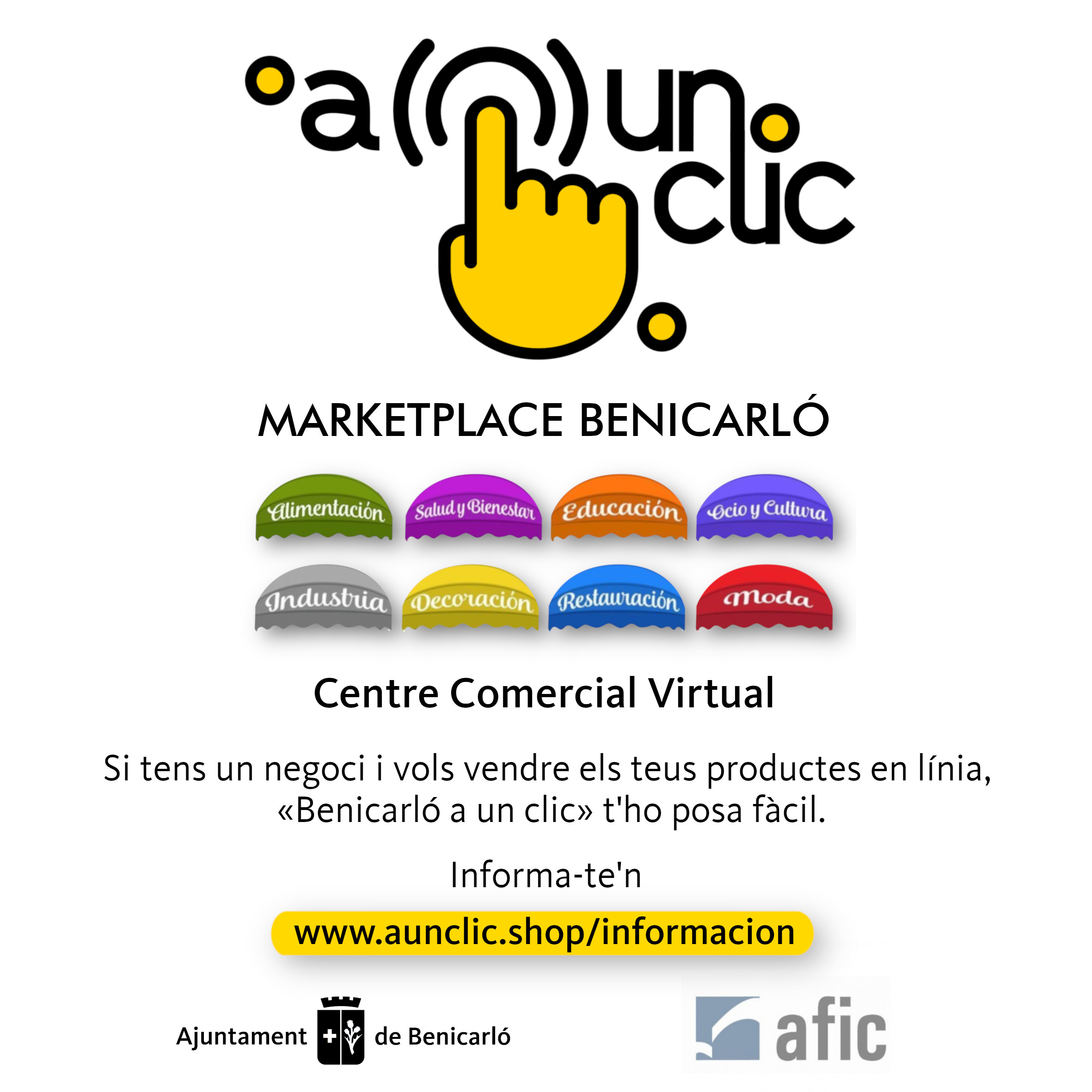 Les empreses interessades a formar part de la plataforma Marketplace Benicarló poden posar-se en contacte amb el Departament de Comerç a través del correu afic@benicarlo.org o del telèfon 964 82 50 13. També poden contactar directament amb la plataforma a través de l'adreça www.aunclic.shop/informacion.
