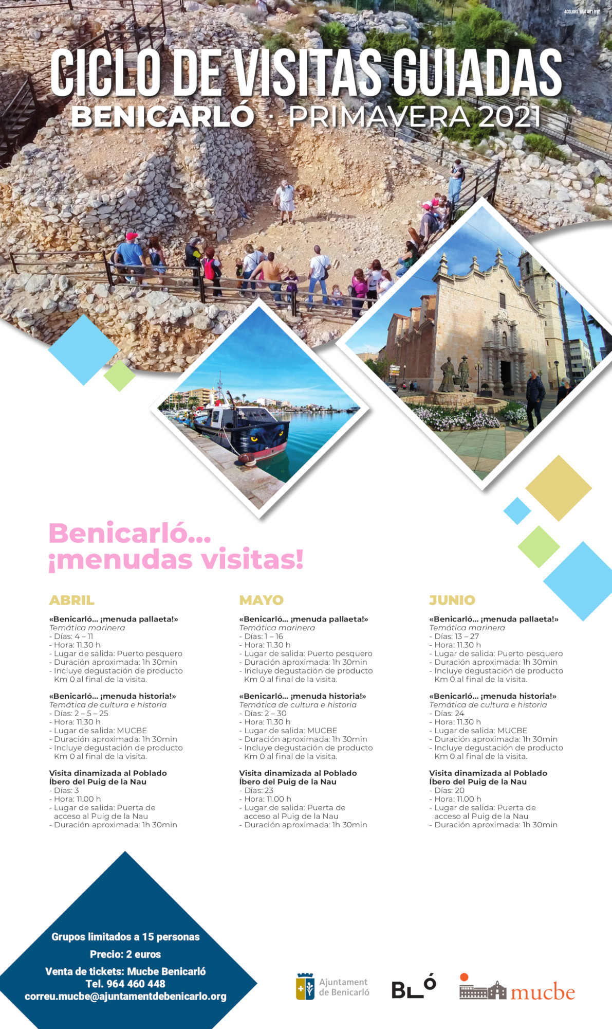 S'han programat tres visites guiades per la zona marítima, pel centre de la ciutat i pel poblat iber del Puig de la Nau que es repetiran durant els mesos d'abril, maig i juny. El preu dels tiquets és de 2 euros i es poden comprar al Mucbe.