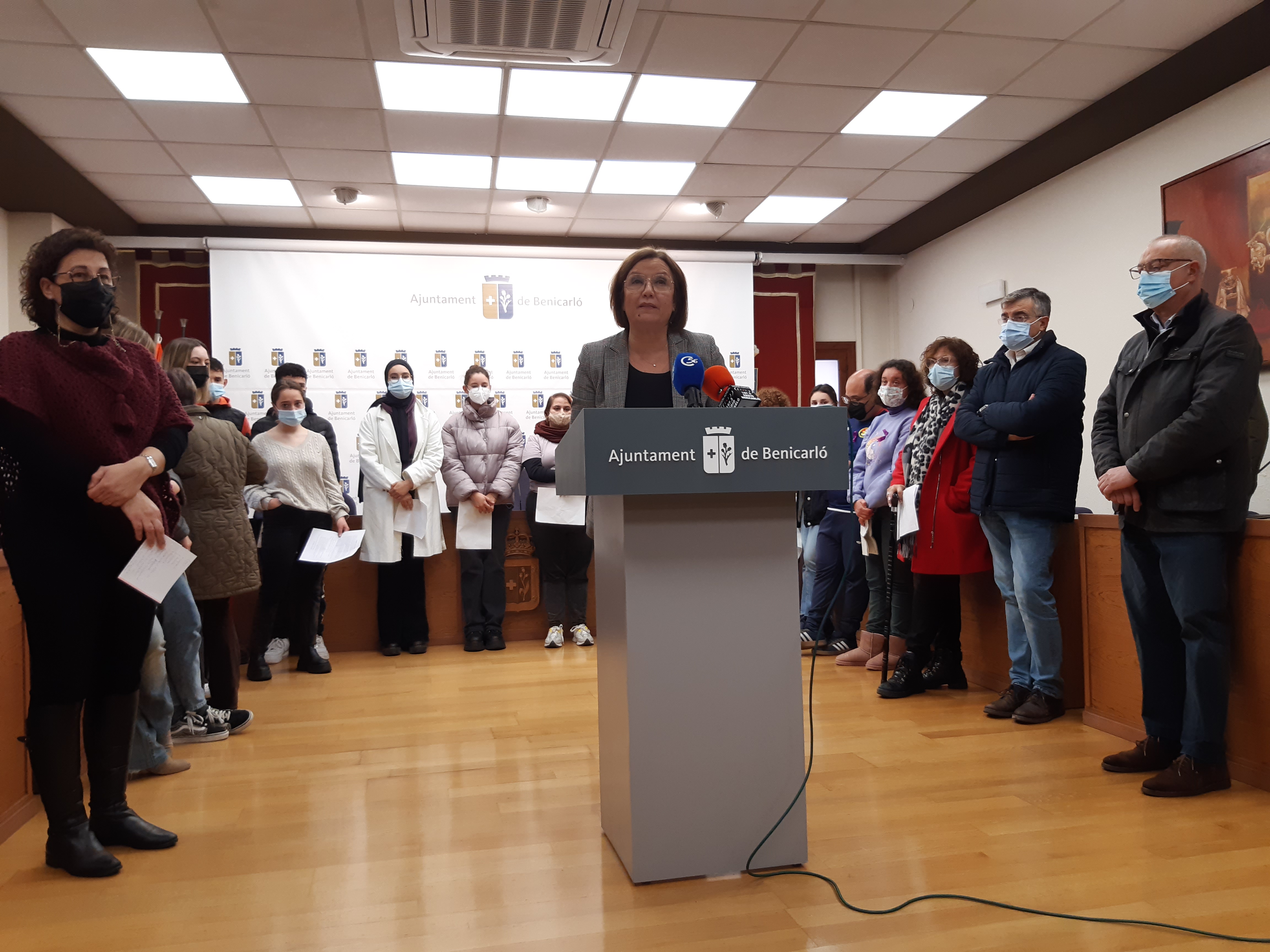 La lectura del manifest institucional ha anat a càrrec de l'alcaldessa, Xaro Miralles, la regidora de Serveis Socials i Polítiques Inclusives, Gemma Cerdá, el portaveu del PP, Juan Antonio Mañá, el portaveu de Ciudadanos, Benjamín Martí, i la portaveu de Compromís, Marta Escudero.