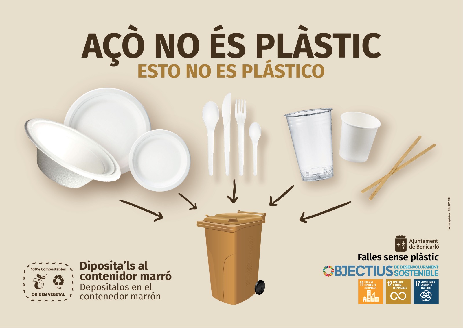 Per tal d'aconseguir-ho, l'Ajuntament ha repartit a les dotze comissions falleres més de 300.000 elements de vaixelles compostables, entre plats, bols, tenedors, culleres, ganivets, gots, culleretes i bastonets per als cafés. Totes les unitats estan elaborades amb canya de sucre, panís o blat, per tal de substituir els plàstics d'un sol ús.