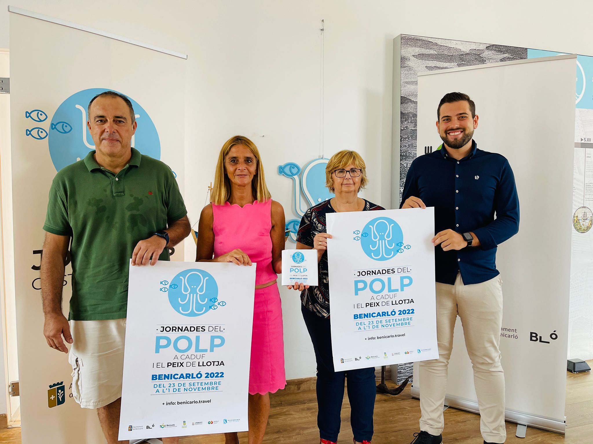 Las concejalas de Turismo y de Agricultura, Isabel Cardona e Inma Díaz respectivamente, junto con el vicepresidente de Restauración Benicarló, Anay Bueno, y del presidente de la Cofradía de Pescadores San Telmo, Francisco Querol, han presentado hoy el cartel de la 14a edición de las Jornadas, un acontecimiento pensado para potenciar uno de los principales productos de la costa benicarlanda: el pulpo pescado a caduf, una modalidad de pesca que selecciona los mejores ejemplares y otorga al producto una mayor calidad.