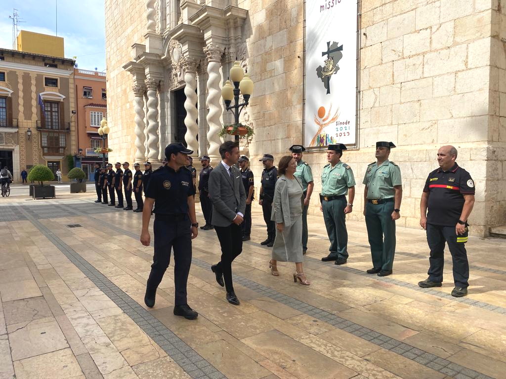 L'alcaldessa de Benicarló, Xaro Miralles, i el regidor de Policia i Governació, Ilde Añó, han passat revista aquest matí al cos de la Policia Local de Benicarló amb motiu de la celebració de la festivitat del seu patró, Sant Miquel.