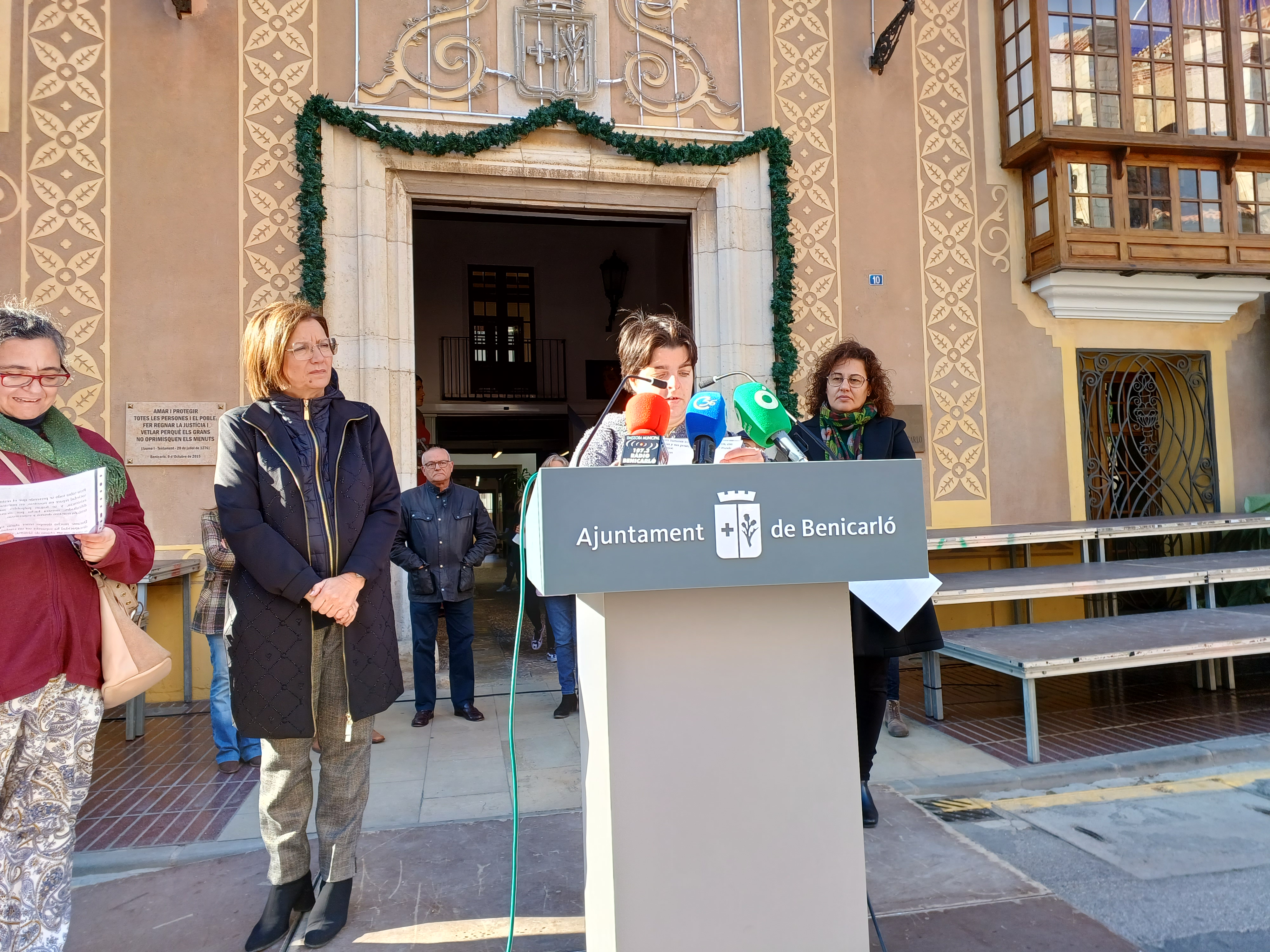 L'alcaldessa de Benicarló, Xaro Miralles, i la regidora de Serveis Socials i Polítiques inclusives, Gemma Cerdá, per part del PSPV-PSOE; Juan Antonio Mañá en nom del Partit Popular; Benjamín Martí, portaveu de Ciudadanos; i Marta Escudero, portaveu de Compromís, han llegit el document, que recull la voluntat de l'Ajuntament de «seguir treballant per a impulsar polítiques que promoguen un veritable accés a l'ocupació i garantisquen la igualtat d'oportunitats en tots els àmbits de la vida».