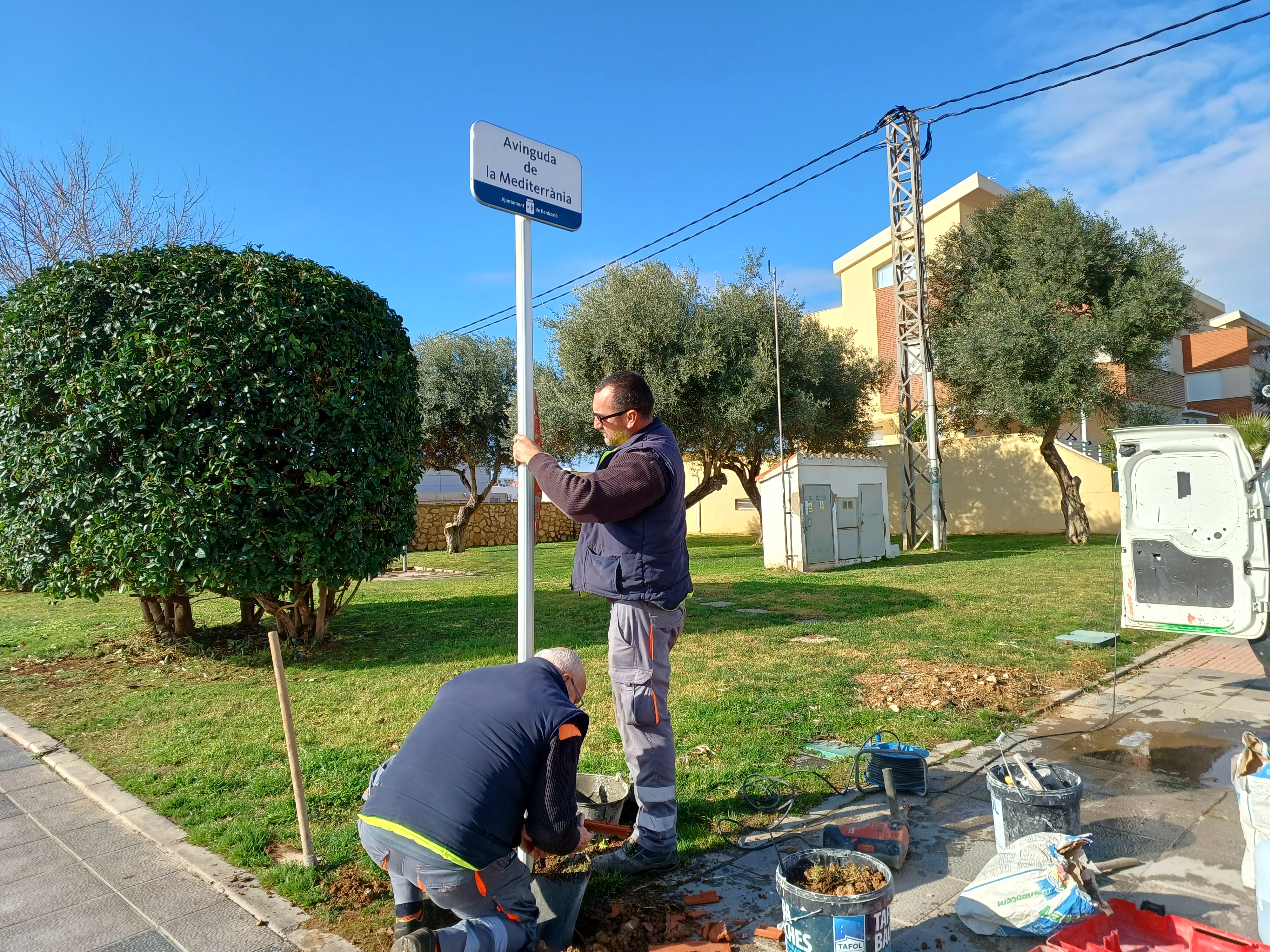 La Brigada d'Obres i Serveis ha començat a instal·lar els cartells identificatius als carrers de la partida Solades, una vegada aprovada la nova denominació de vials. Durant els pròxims dies, els operaris col·locaran més de 70 cartells amb el nom de cadascun dels 30 carrers de la partida, facilitant d'aquesta manera la localització dels habitatges que es troben en una de les zones residencials més poblades de Benicarló.