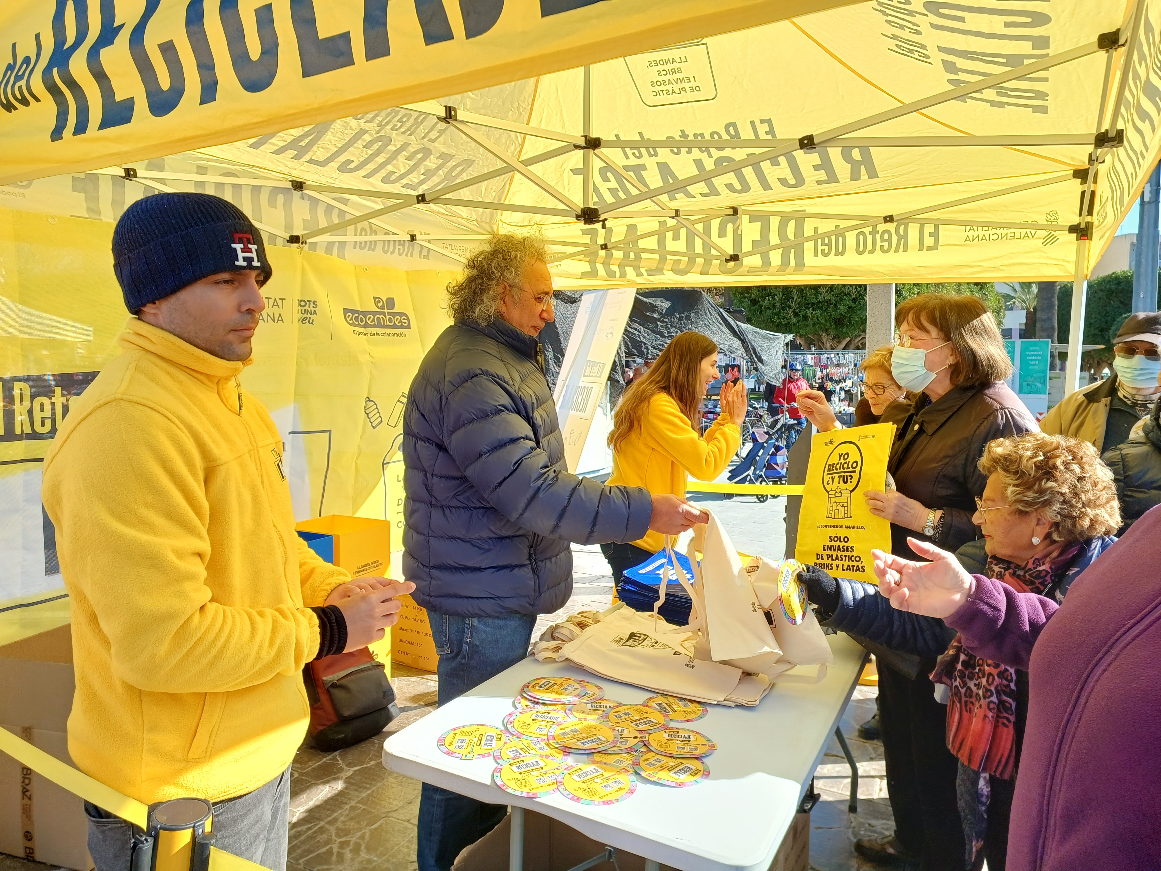 El equipo del proyecto 'El Repte del Reciclatge' se ha desplazado hoy a Benicarló para resolver dudas a la población sobre cómo reciclar correctamente los envases y recorrer las principales calles y comercios de la ciudad para informar sobre la campaña de fomento del reciclaje.