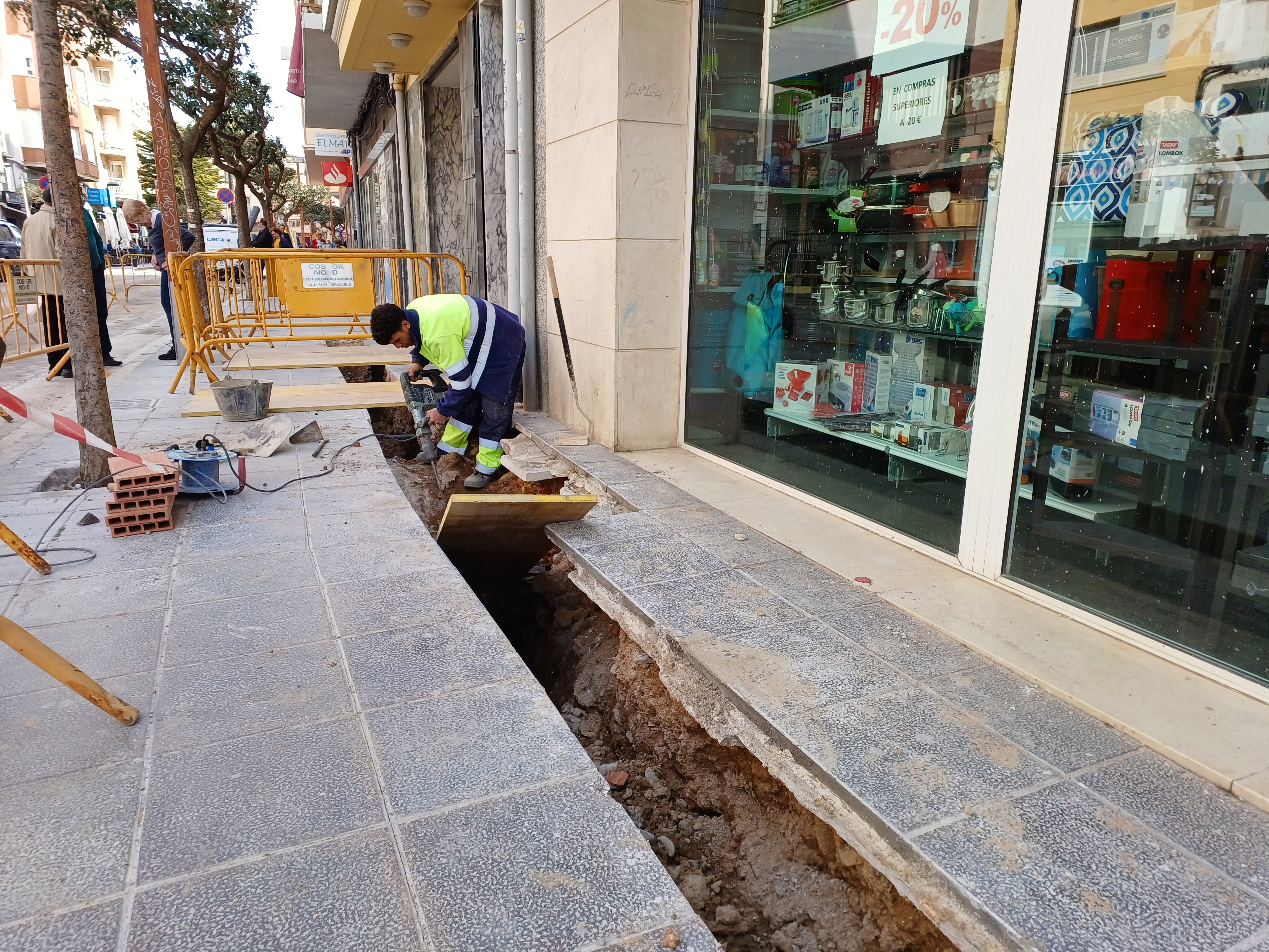 Las obras del parking del Mercado avanzan a buen ritmo y esta semana los trabajos se centran en el soterramiento del cableado eléctrico y de telecomunicaciones que hasta ahora transcurría sujetos al muro perimetral que se derrocó al inicio de las obras.