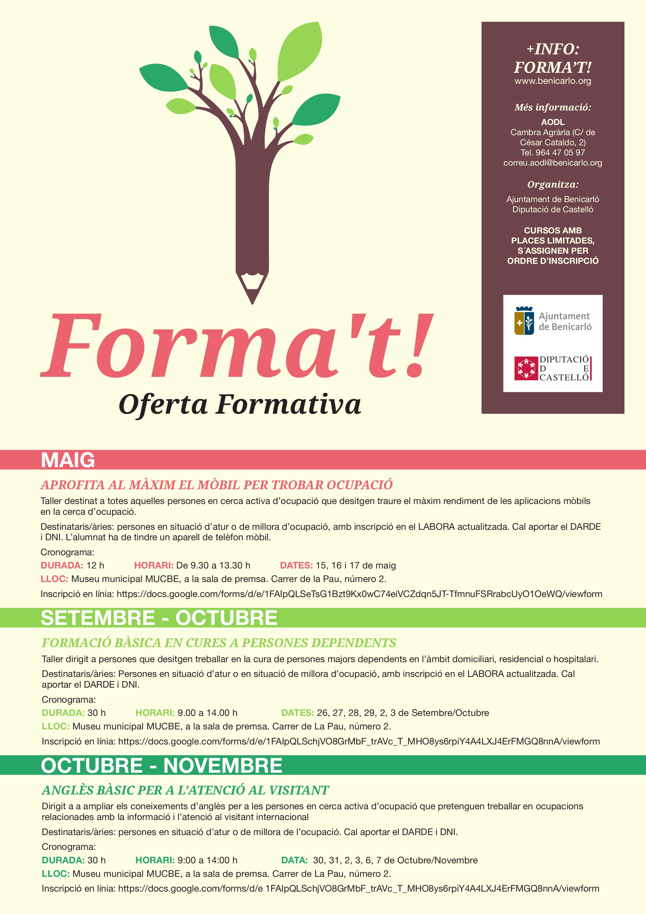 Todos los cursos tienen plazas limitadas que se asignan por orden de inscripción. Consultái aquí el detalle de toda la oferta formativa.