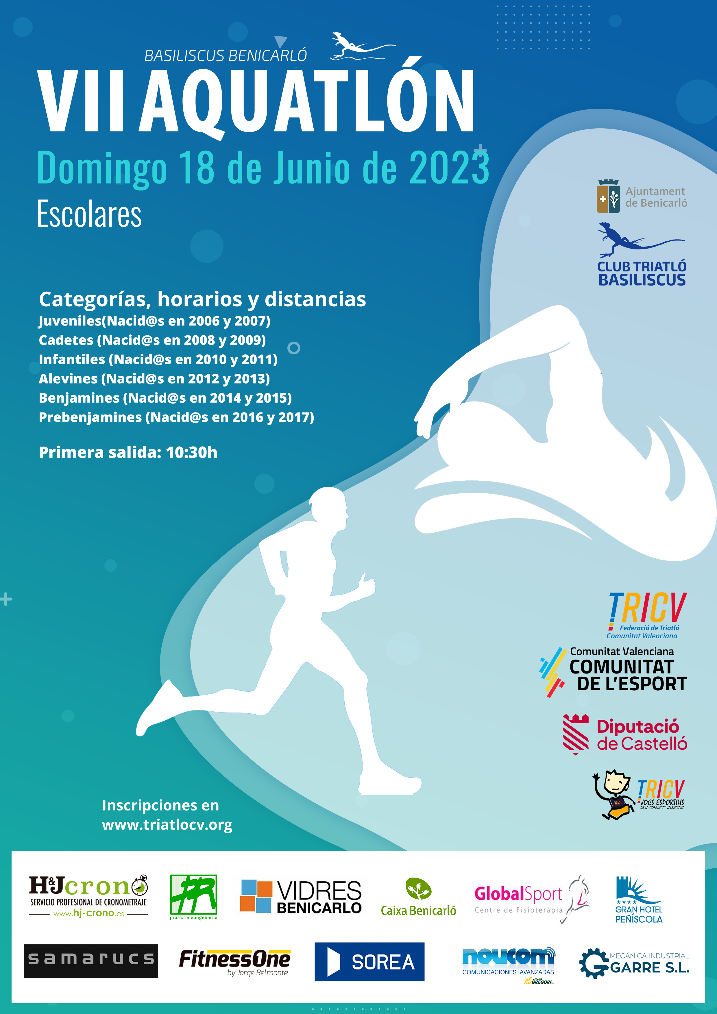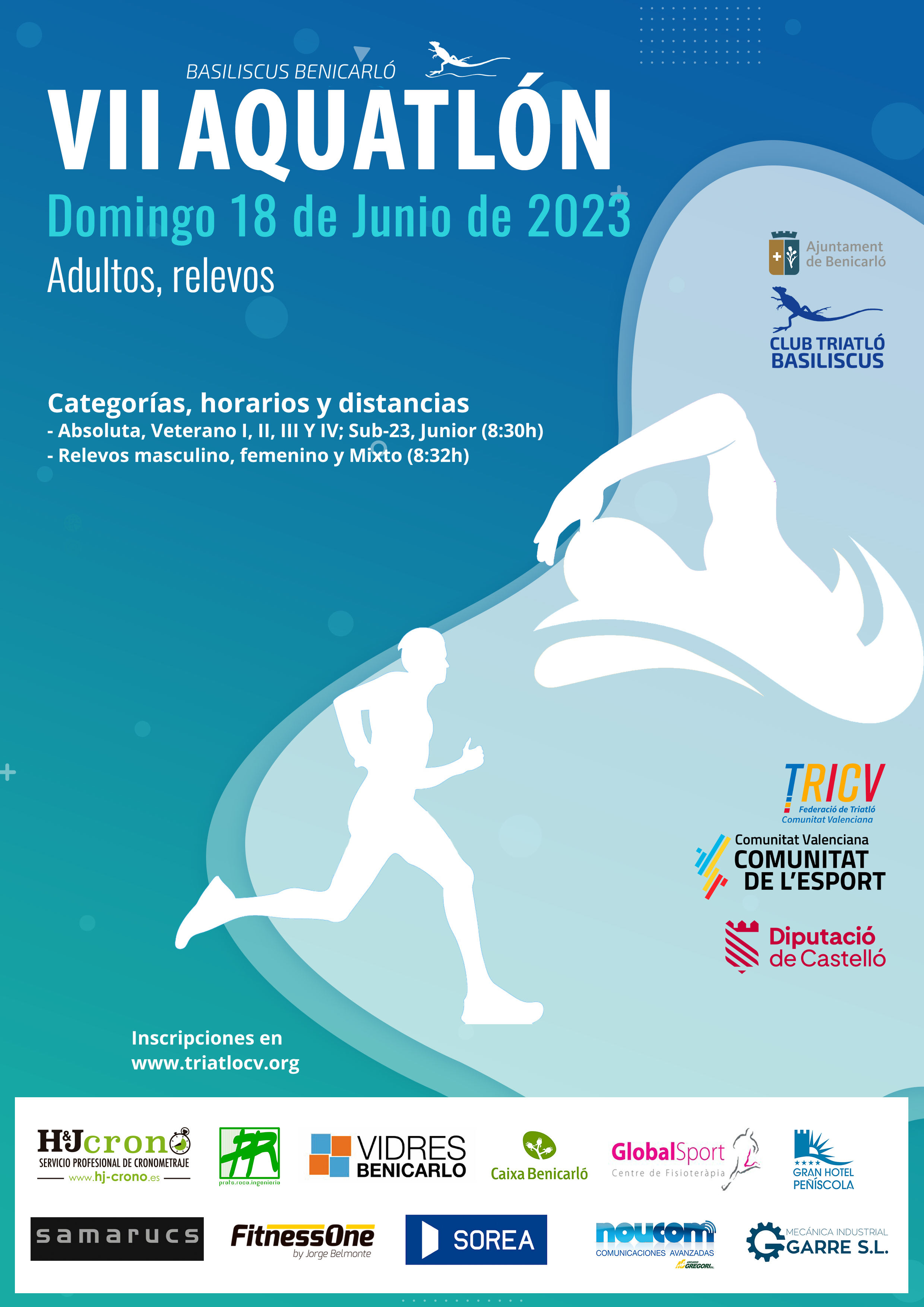 Benicarló es prepara per a acollir la setena edició de l'aquatló, coorganitzada per la Regidoria d'Esports i el Club Triatló Basiliscus, que es disputarà en diferents categories que permetran la participació tant d'especialistes, com d'aficionats, públic infantil i fins i tot famílies al complet.