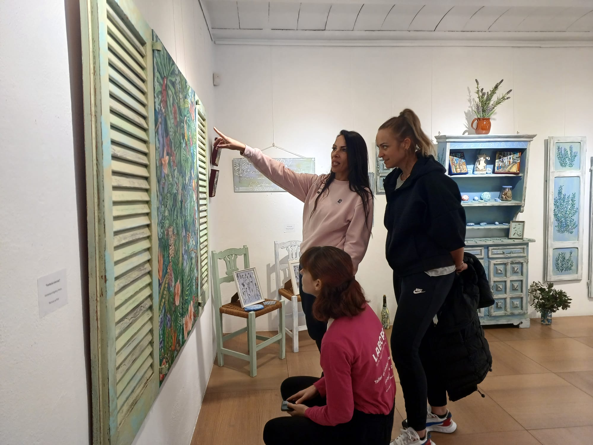 La exposición de Sali consta de cuadros con colores muy vivos en los cuales predominan el azul del mar y el verde de la naturaleza, además de elementos combinados con la pintura, como son caracolas o conchas. La muestra también incluye piezas de mobiliario antiguo restauradas donde se pueden observar poemas escritos o botellas decoradas.