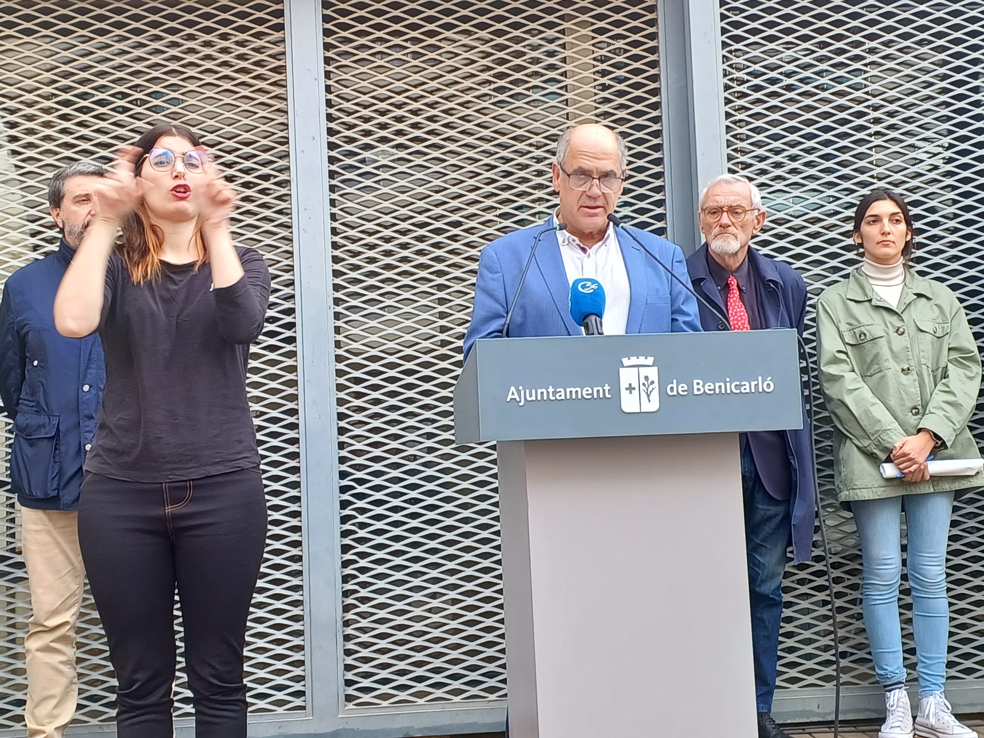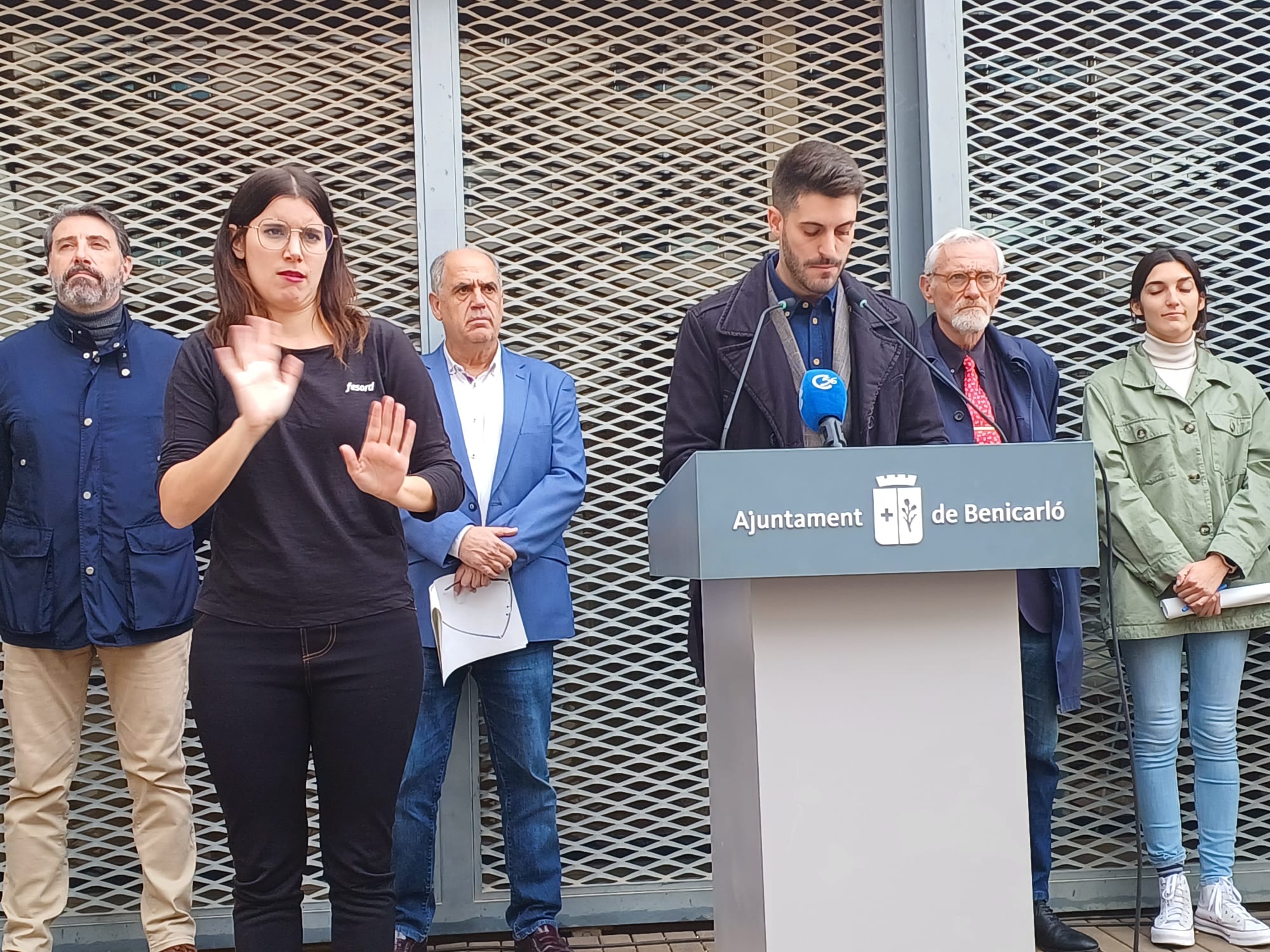 El alcalde de Benicarló, Juanma Cerdá, y el concejal de Participación Ciudadana, Álvaro París, por parte del PP; el concejal de de Educación, Carlos Delshorts, en nombre de Benigazlum; Mireia Mancheño por parte del PSPV-PSOE; y Antonio Fornés en nombre de VOX han leído el documento que manifiesta «la voluntad de acercar a la gente con discapacidad a la sociedad y garantizar una inclusión real en todos los ámbitos, tanto laboral como en general».