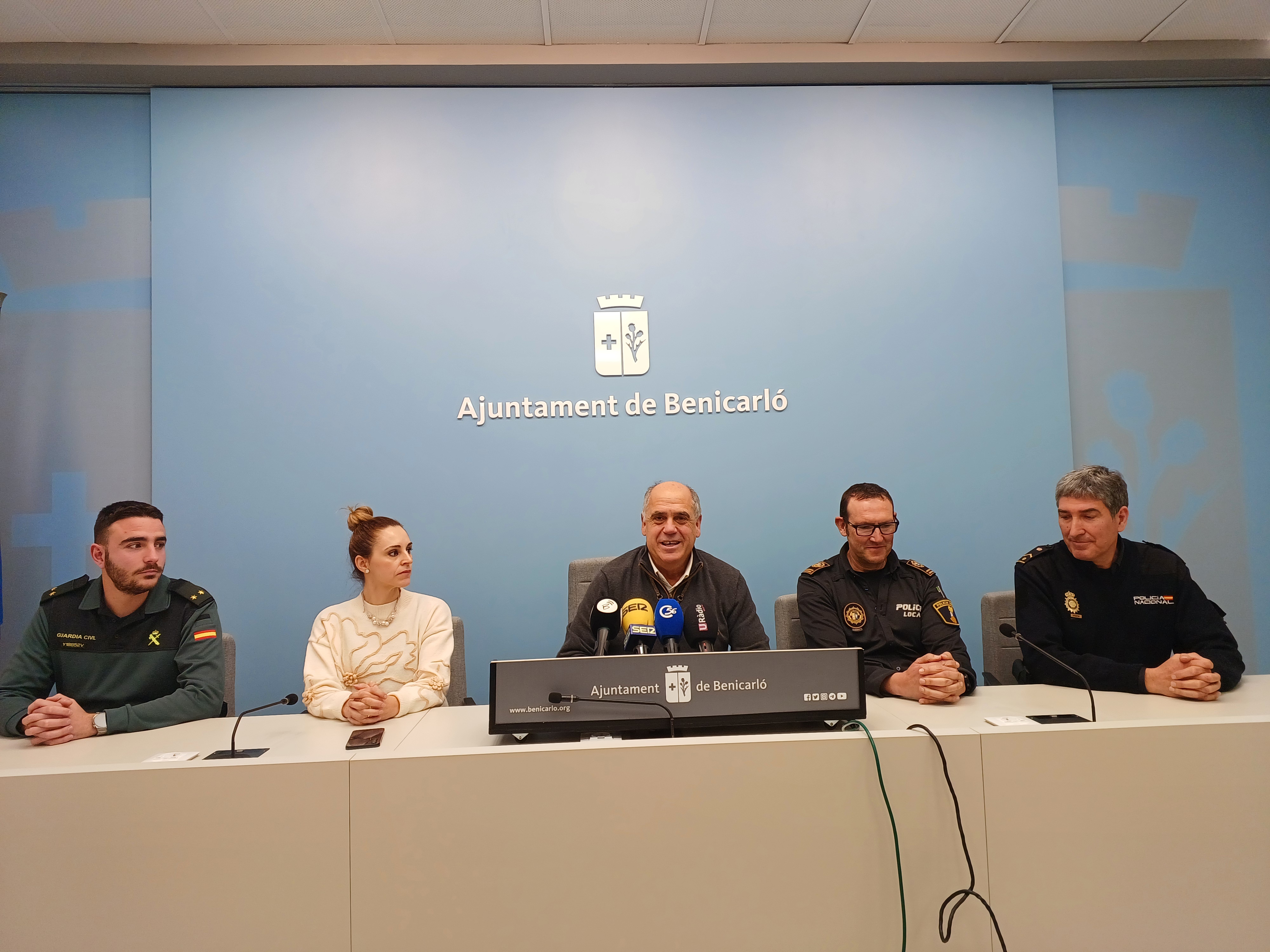 La reunió també ha comptat amb la presència del regidor de Policia i Governació, Fabián Flos, la regidora de Falles, Arantxa García, el regidor d'Agricultura, Borja Castell, el tinent de la Guàrdia Civil a Benicarló, José Manuel Martín, el cap de la Policia Local, Víctor Cheto, i l'inspector en cap de la Policia Autonòmica Fernando Pérez, a més d'altres comandaments de la Guàrdia Civil, Policia Local i Policia Autonòmica.